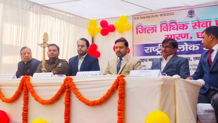 राष्ट्रीय विधिक सेवा प्राधिकरण, नई दिल्ली एवं बिहार राज्य विधिक सेवा प्राधिकरण, पटना के निर्देश पर जिला विधिक सेवा प्राधिकरण, सारण द्वारा आयोजित इस लोक अदालत का उद्घाटन प्रधान जिला एवं सत्र न्यायाधीश सह अध्यक्ष, जिला विधिक सेवा प्राधिकरण पुनीत कुमार गर्ग ने किया। कार्यक्रम में जिला एवं सत्र न्यायाधीश प्रथम मृत्युंजय कुमार सिंह, सचिव ब्रजेश कुमार, जिलाधिकारी वैभव श्रीवास्तव, वरीय पुलिस अधीक्षक डॉ. कुमार आशीष एवं विधि मंडल अध्यक्ष गंगोत्री प्रसाद ने संयुक्त रूप से दीप प्रज्वलित कर लोक अदालत का शुभारंभ किया।