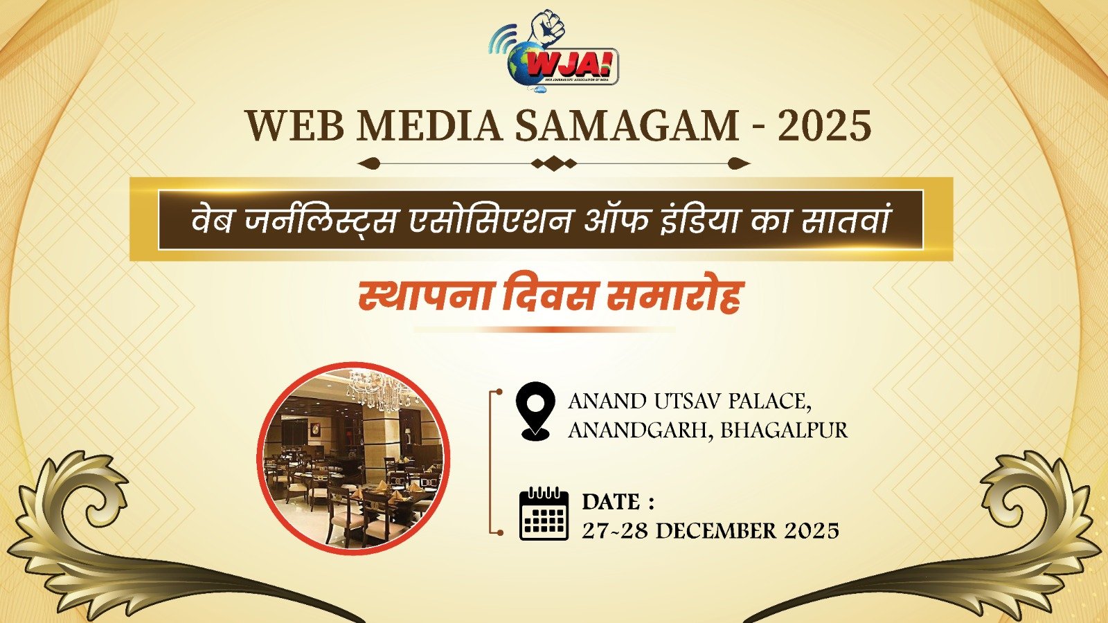 भागलपुर। वेब पत्रकारिता की धड़कन अब भागलपुर में सुनाई देगी। 27 और 28 दिसंबर 2025 को शहर में आयोजित होने जा रहा है वेब मीडिया समागम–2025, जो वेब जर्नलिस्ट्स एसोसिएशन ऑफ इंडिया (WJAI) के 7वें स्थापना दिवस के अवसर पर एक भव्य और विचारोत्तेजक राष्ट्रीय आयोजन के रूप में सामने आएगा। इस दो दिवसीय समागम में पत्रकारिता, प्रशासन, शिक्षा और सामाजिक क्षेत्र की नामचीन हस्तियों का महाजुटान भागलपुर को राष्ट्रीय फलक पर स्थापित करेगा।
