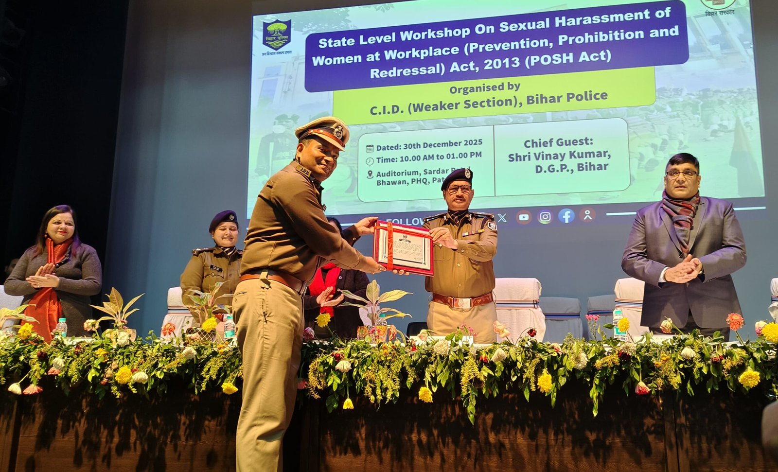 इस अवसर पर बिहार के पुलिस महानिदेशक विनय कुमार (भा.पु.से.) ने सराहनीय नेतृत्व, सतत निगरानी और प्रभावी कार्यकुशलता के लिए वरीय पुलिस अधीक्षक, सारण डॉ कुमार आशीष (भा.पु.से.) को प्रशस्ति पत्र देकर सम्मानित किया।